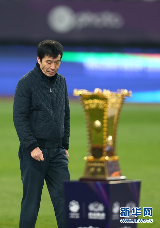 12月19日,山东鲁能泰山队前主教练李霄鹏在颁奖仪式前。当日,在2020赛季中国足协杯决赛中,山东鲁能泰山队以2比0战胜江苏苏宁易购队,夺得冠军。新华社记者 贾浩成 摄