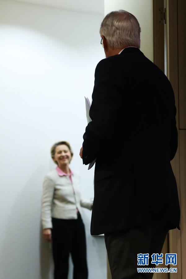 12月24日,在比利时布鲁塞尔的欧盟委员会总部,欧盟负责与英国谈判的首席代表米歇尔·巴尼耶(右)与欧盟委员会主席冯德莱恩在新闻发布会后离开。 欧盟委员会主席冯德莱恩24日在新闻发布会上说,欧盟与英国达成了一份“公平的”协议。 新华社记者 郑焕松 摄