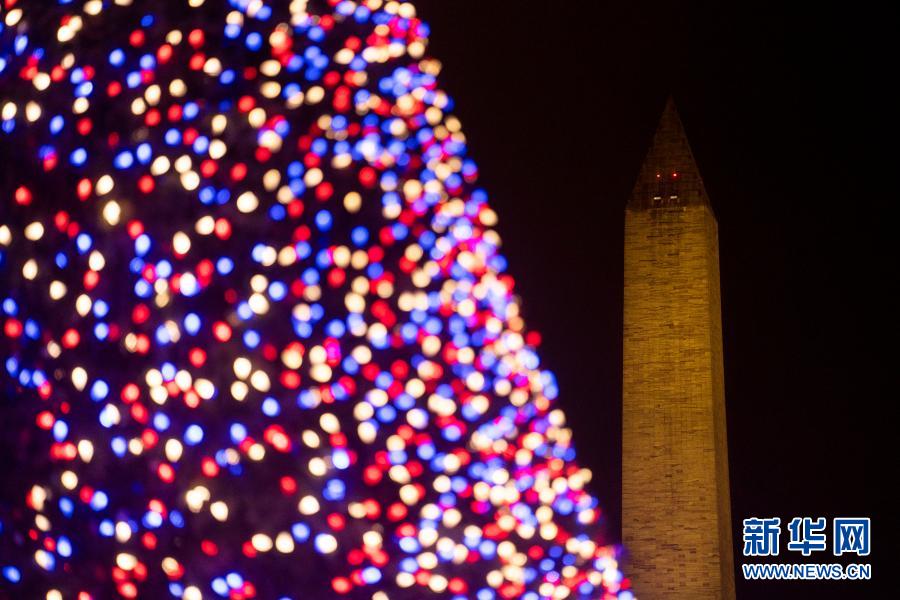 这是12月24日在美国华盛顿拍摄的华盛顿纪念碑和国家圣诞树。