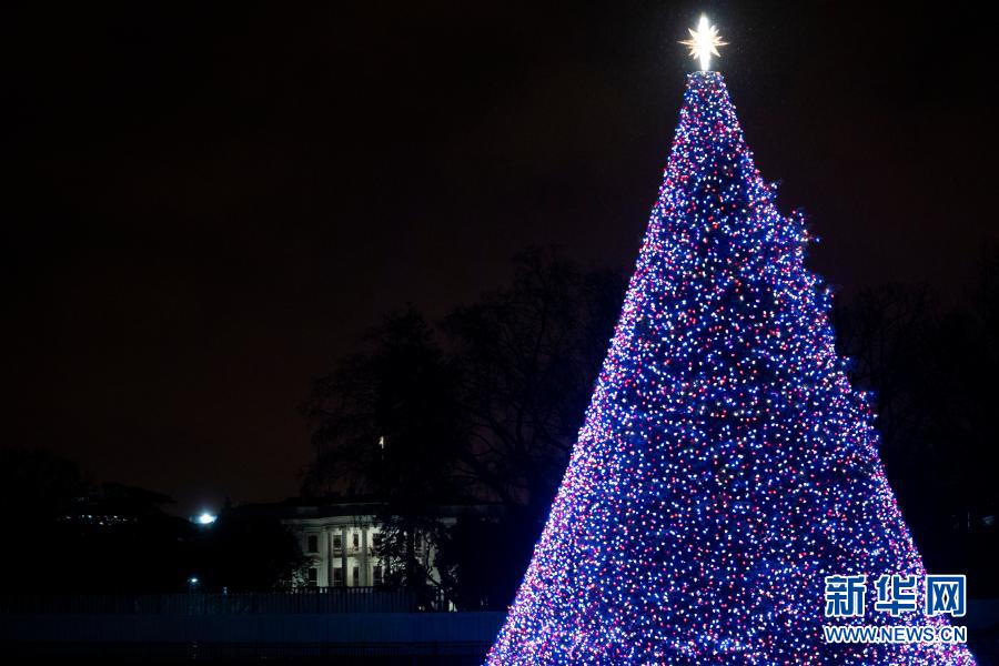 这是12月24日在美国华盛顿拍摄的白宫和国家圣诞树。