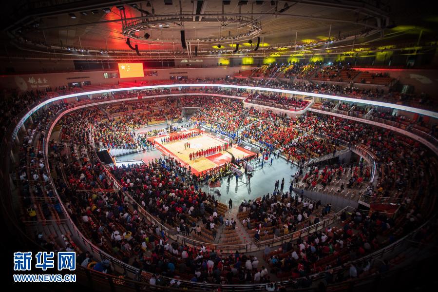 这是2020年10月4日,2020姚基金慈善赛在武汉体育中心体育馆举行。新华社记者 肖艺九 摄
