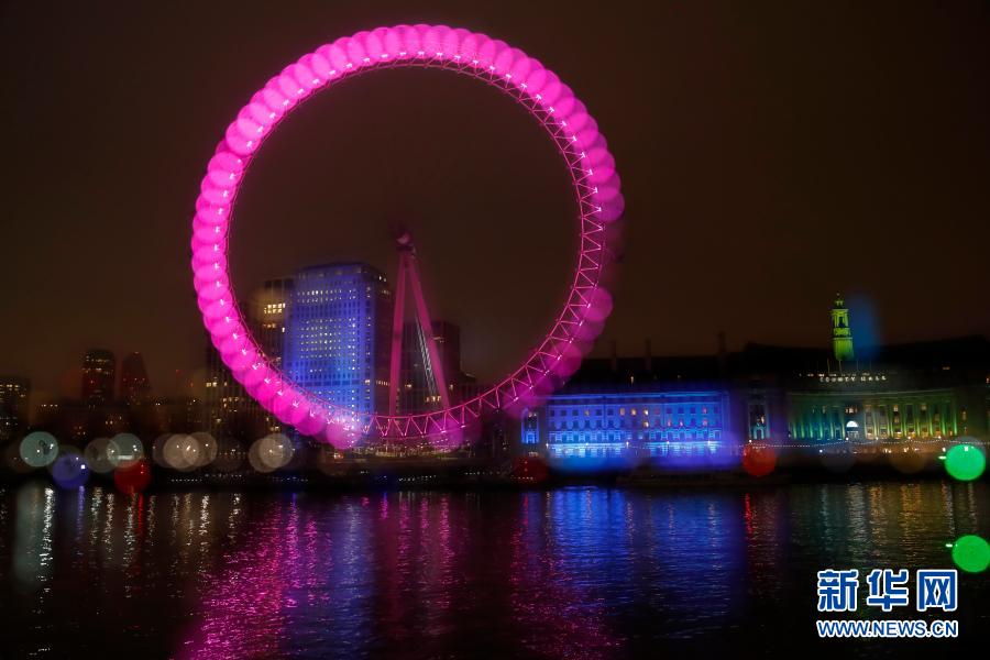 这是2020年12月31日晚在英国伦敦拍摄的夜色中的“伦敦眼”。