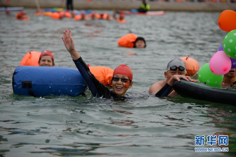 1月1日,在广西南宁,游泳爱好者横渡邕江。 当日,2021年冬泳邕江活动在广西南宁举行。来自南宁、柳州、桂林等地的近500名冬泳运动爱好者横渡邕江,迎接新年。 新华社记者 刘岭逸 摄