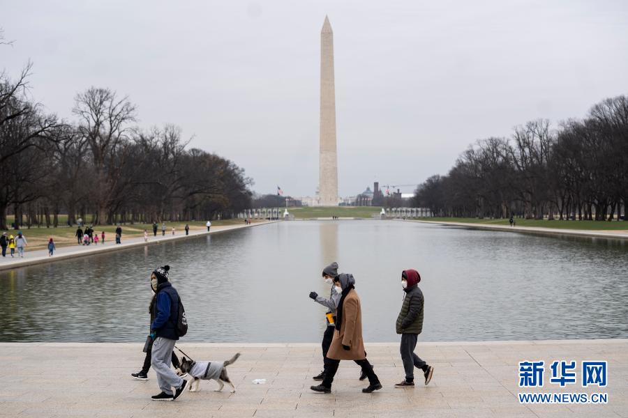 1月1日,在美国华盛顿,人们经过林肯纪念堂倒影池。新华社记者 刘杰 摄