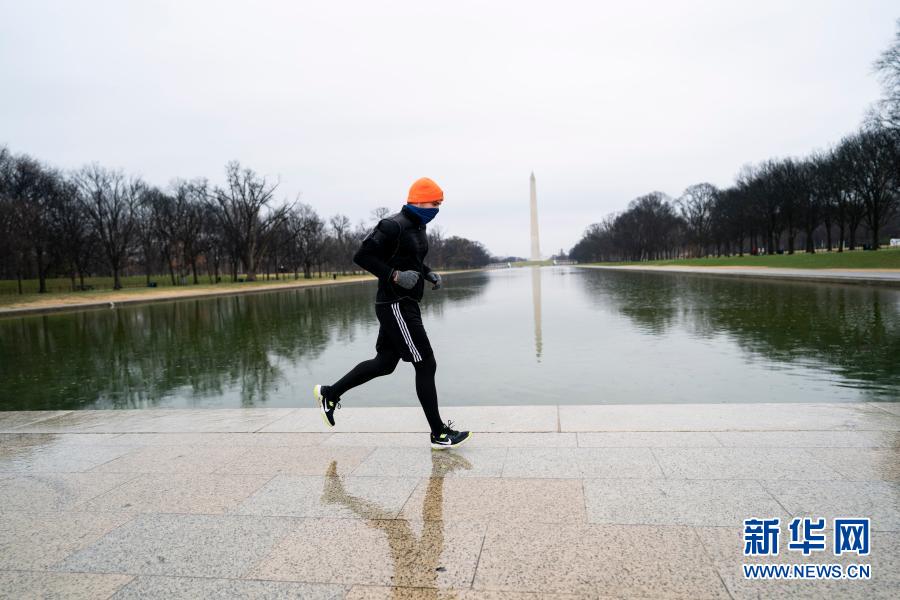 1月1日,在美国华盛顿,一名男子跑步经过林肯纪念堂倒影池。新华社记者 刘杰 摄