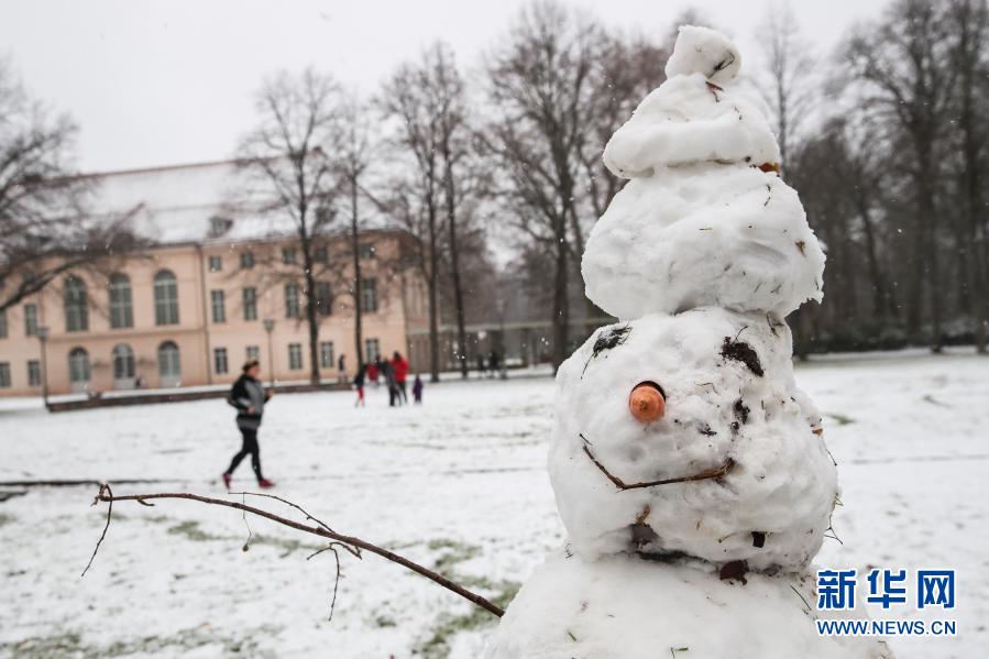 这是1月3日在德国首都柏林一座公园内拍摄的雪人。 当日,德国柏林迎来2021年的首场降雪。 新华社记者单宇琦摄 |