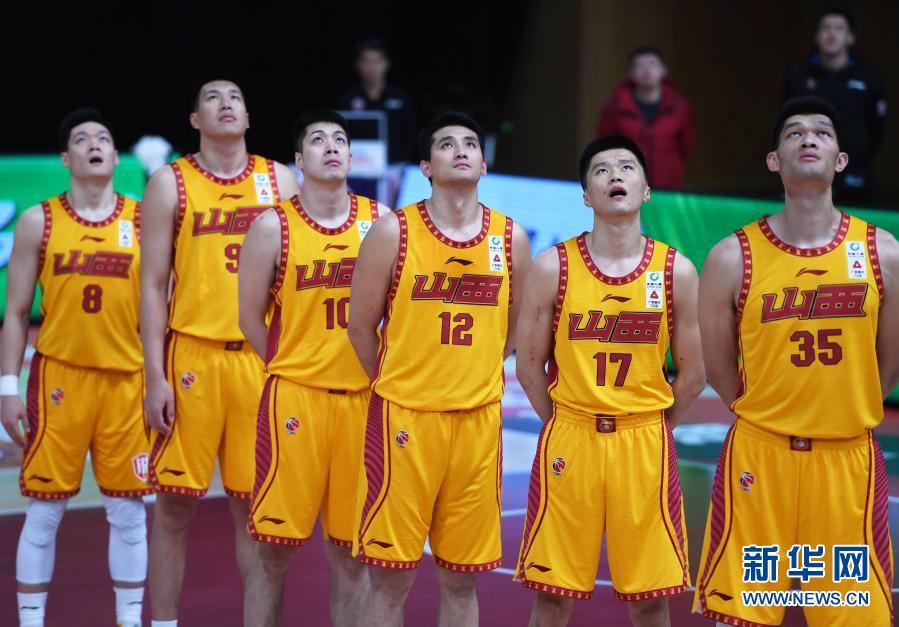 1月7日,身穿新版比赛服的山西汾酒股份队球员在赛前升国旗仪式上。