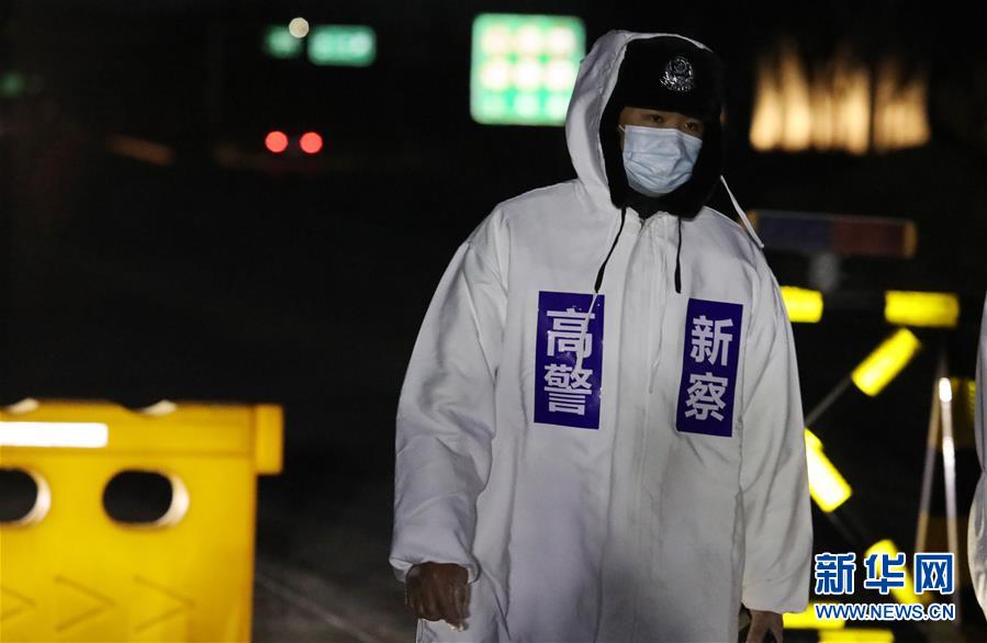 1月9日,一名民警在检查站执勤。 为阻断疫情扩散蔓延,河北省石家庄市高新区公安分局组织民警24小时在藁城区通往石家庄城区的道路上对来往车辆人员进行核查。 新华社记者 金皓原 摄