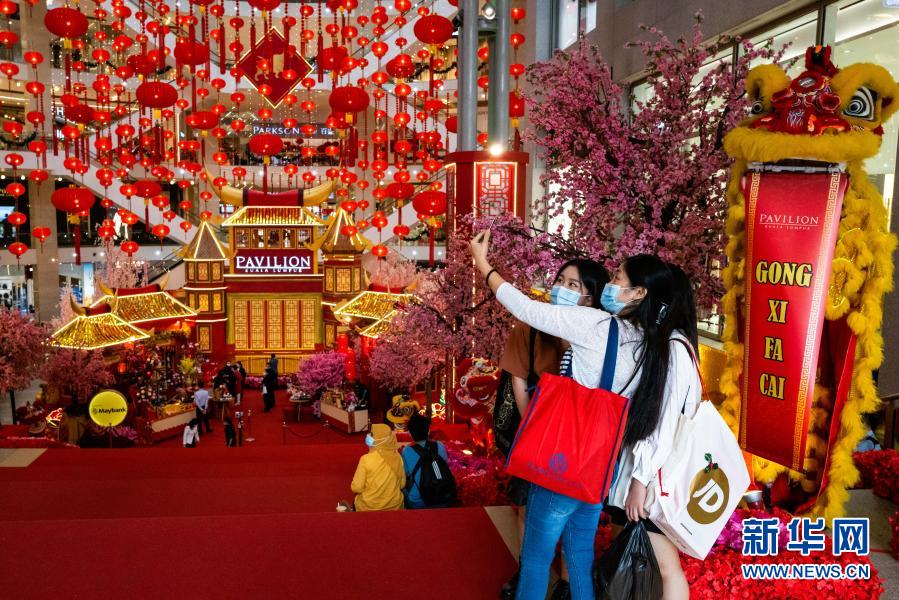 1月11日,在马来西亚吉隆坡一家商场,人们戴着口罩在春节装饰品旁拍照。 马来西亚总理穆希丁1月11日宣布,鉴于新冠确诊病例快速增加,政府决定进一步收紧行动管控措施。穆希丁宣布,政府决定1月13日至26日在高风险的首都吉隆坡、行政首都普特拉贾亚、雪兰莪州、沙巴州、柔佛州等地实施“行动管制令”。 新华社记者朱炜摄