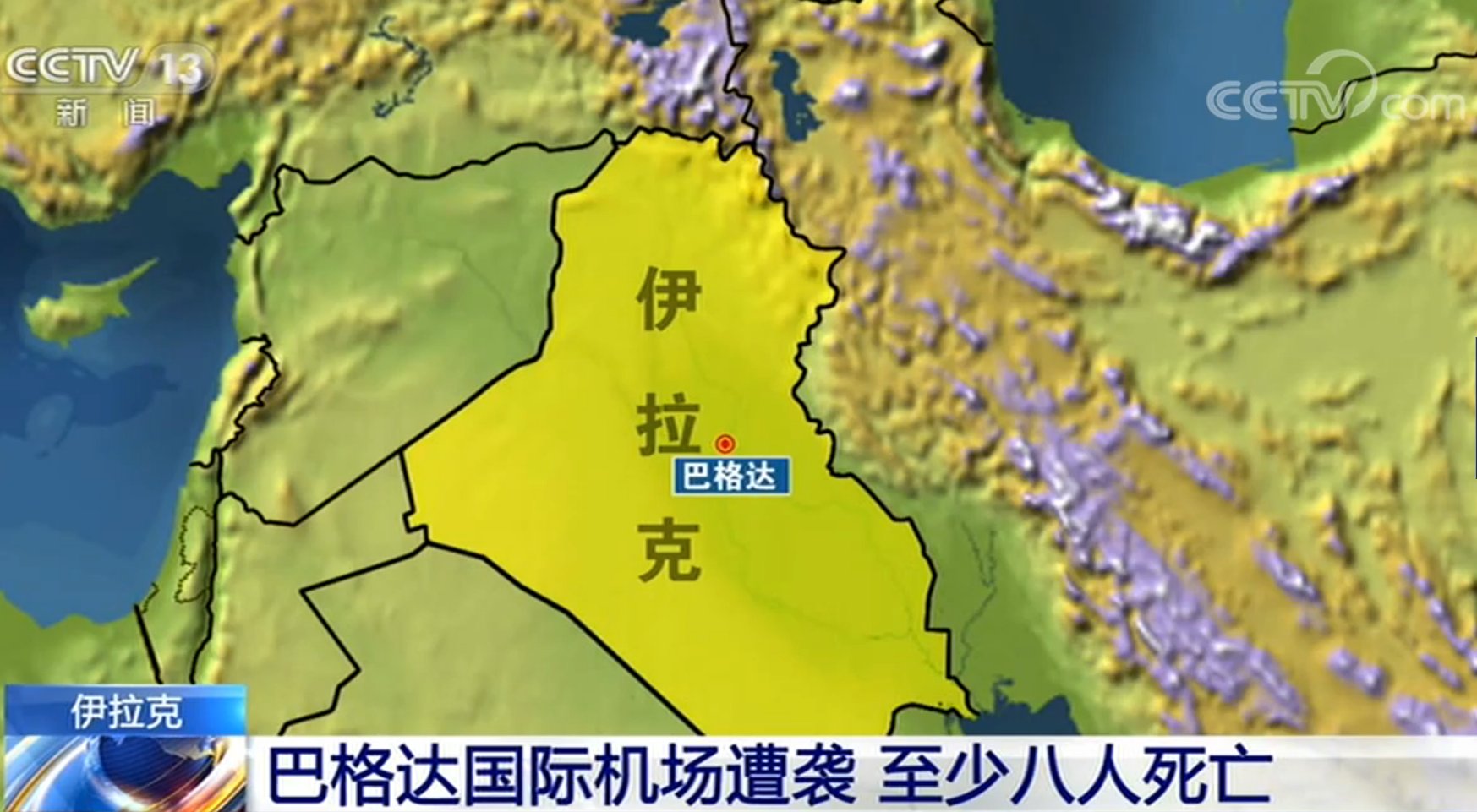 伊拉克首都巴格达国际机场当地时间3日凌晨遭3枚火箭弹袭击,造成包括一名伊朗军方高级将领在内至少8人死亡。对此,伊外交部提出严正抗议。美国国防部发布声明称,在美国总统特朗普指示下,美军采取“果断防御行动”,击毙了伊朗军方将领卡西姆·苏莱马尼。(图片来源:央视视频截图)