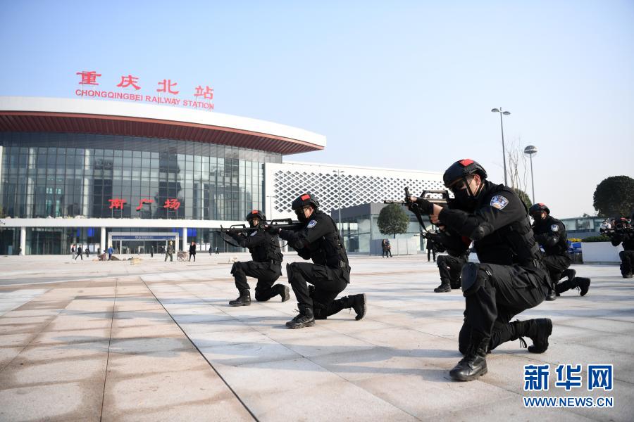 当日,为备战春运,中国铁路成都局集团有限公司重庆客运段联合重庆铁路公安处在重庆北站南广场开展服务礼仪培训、应急技能模拟演练等活动。