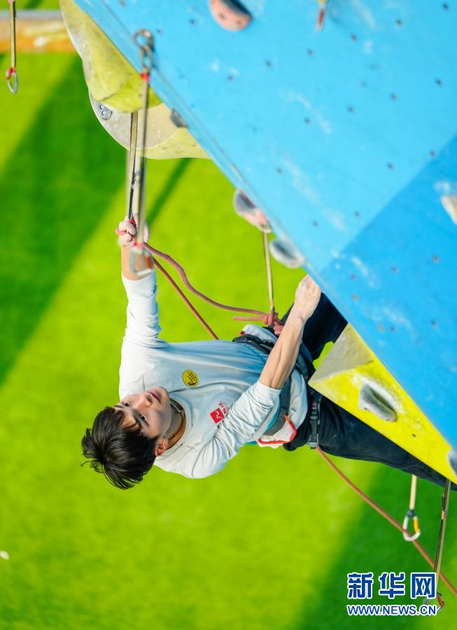 1月13日,国家攀岩集训队(重庆)队员付家豪在难度攀岩训练中。 趁着时下重庆难得的晴好天气,国家攀岩集训队(重庆)在重庆市九龙坡区华岩壁虎王国家攀岩示范公园积极开展冬训,备战第十四届全运会和重庆市第六届运动会。 新华社记者 刘潺 摄