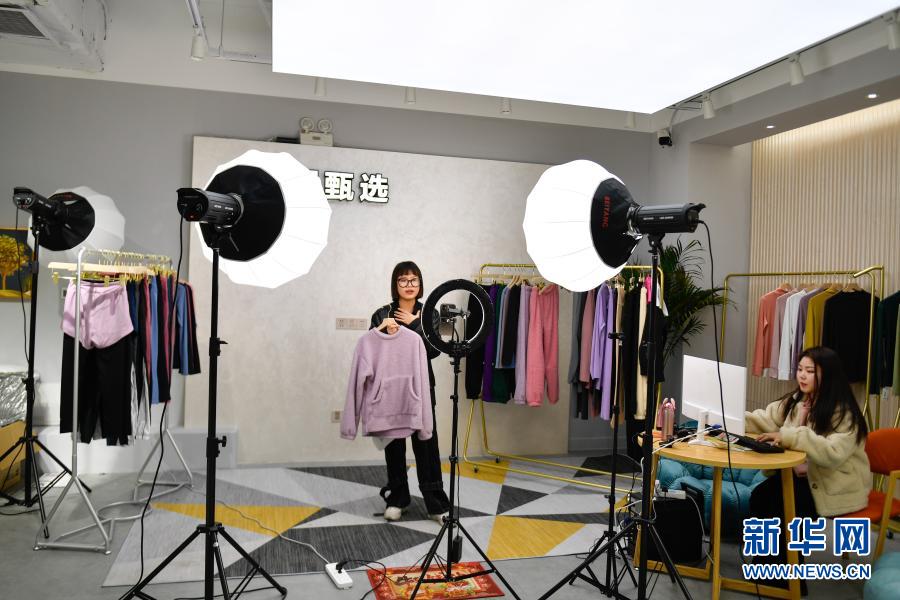1月14日,主播在“义乌好货”直播产业园直播带货。新华社记者 黄宗治 摄