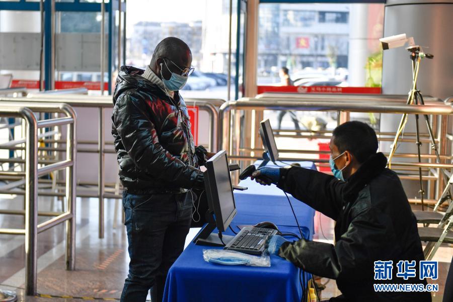 1月14日,工作人员在义乌国际商贸城入口处查验外商的健康码。新华社记者 黄宗治 摄 |