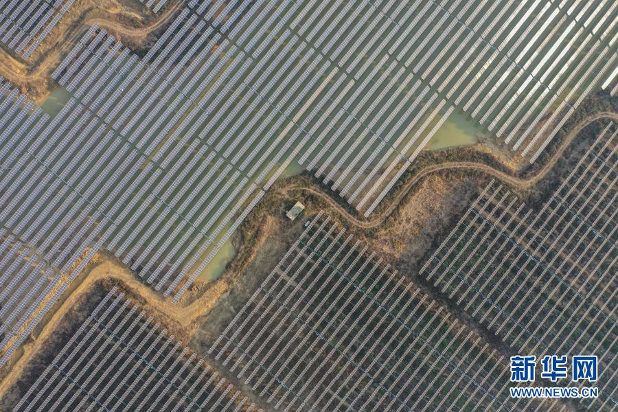 这是1月15日拍摄的广西桂平市蒙圩镇玉柴农光互补光伏发电项目(无人机照片)。新华社记者 刘岭逸 摄