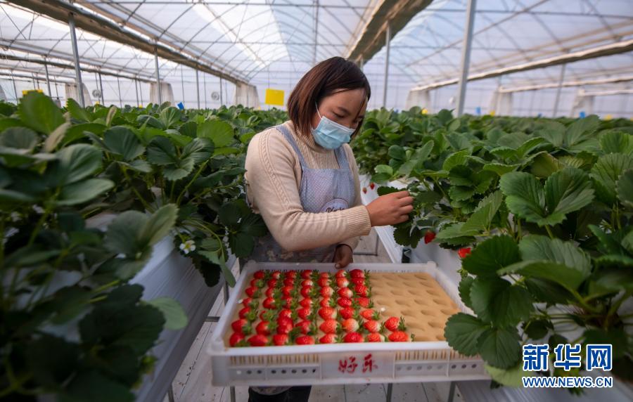 云南省会泽县待补镇村民在采摘草莓(1月15日摄)。