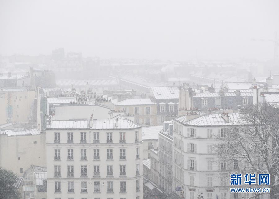 当日,法国巴黎迎来今冬以来的首场降雪。