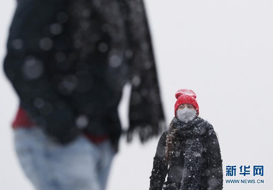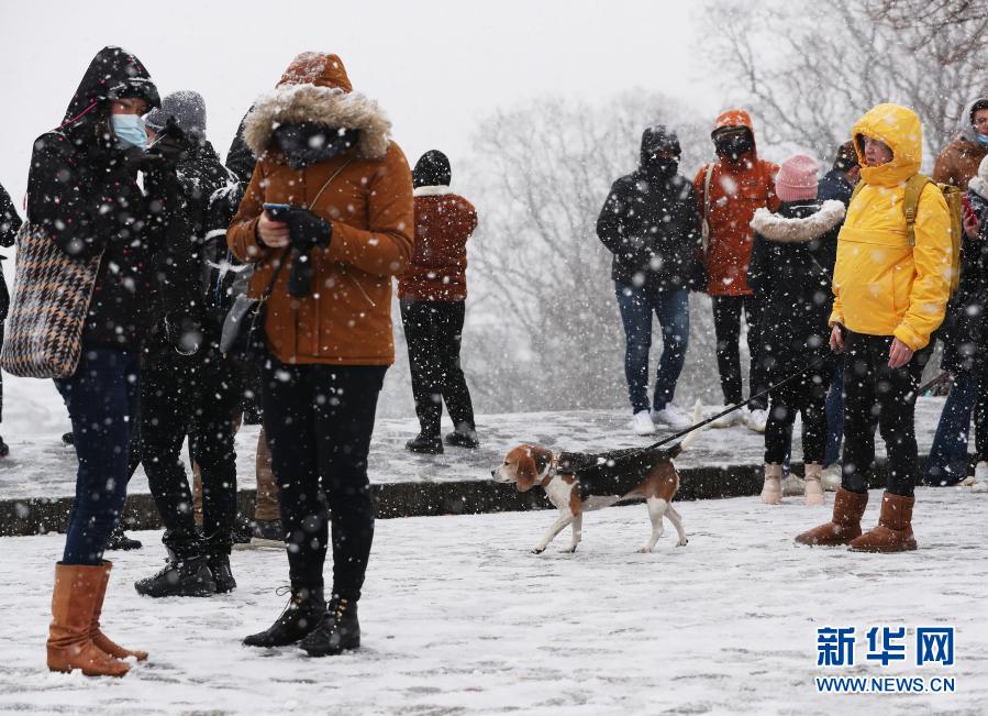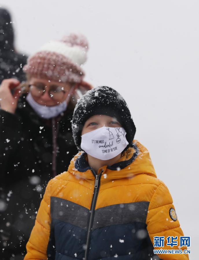 1月16日,人们来到法国巴黎蒙马特高地圣心教堂前赏雪。 当日,法国巴黎迎来今冬以来的首场降雪。 新华社记者高静摄