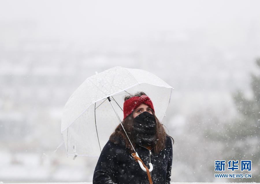 1月16日,一名女子来到法国巴黎蒙马特高地赏雪。 当日,法国巴黎迎来今冬以来的首场降雪。 新华社记者高静摄