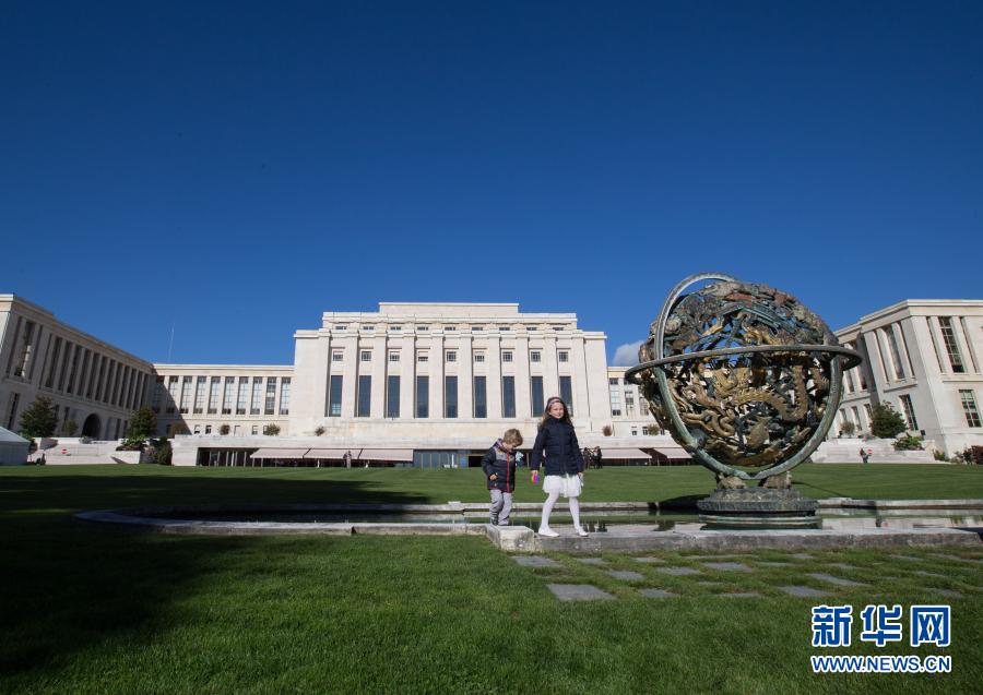 这是2017年10月7日拍摄的瑞士日内瓦的联合国万国宫的外景照片。