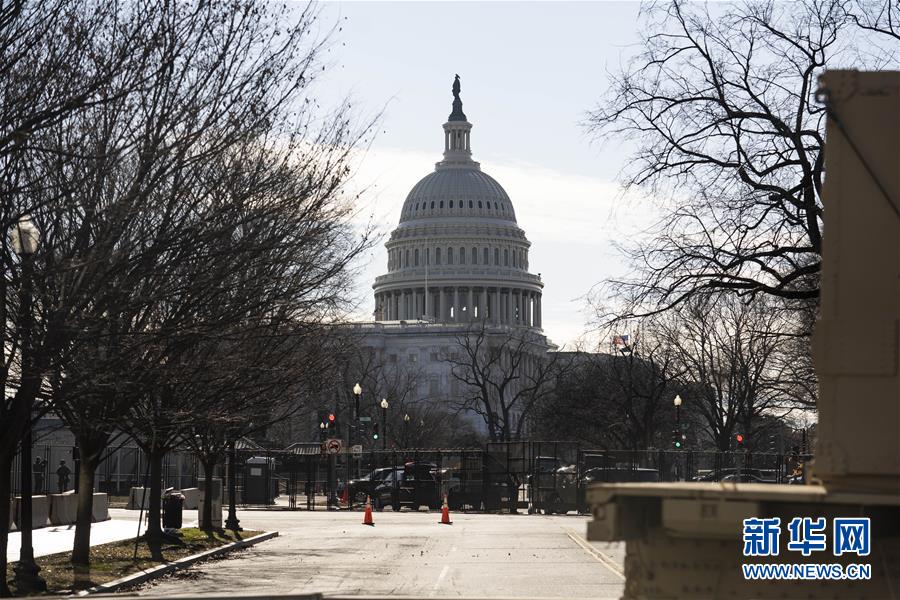 这是1月18日在美国首都华盛顿拍摄的国会大厦和隔离围栏。新华社记者 刘杰 摄