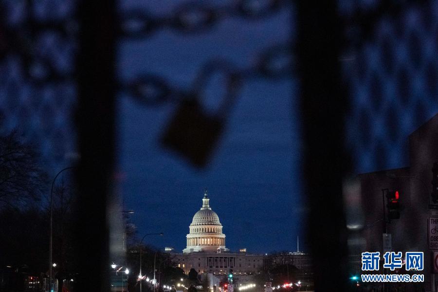 1月17日傍晚,在美国华盛顿,用于举行就职典礼的国会大厦及周边区域被隔离围栏封锁。