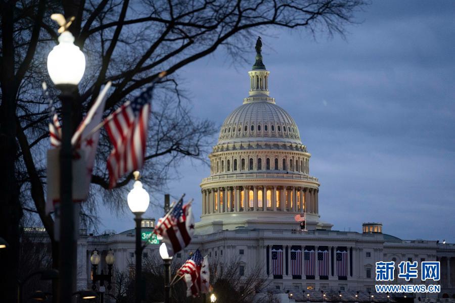这是1月17日傍晚在美国华盛顿拍摄的用于举行就职典礼的国会大厦。新华社记者 刘杰 摄