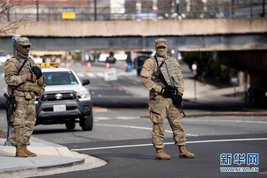 这是1月17日在美国华盛顿街头拍摄的安全人员。新华社记者 刘杰 摄
