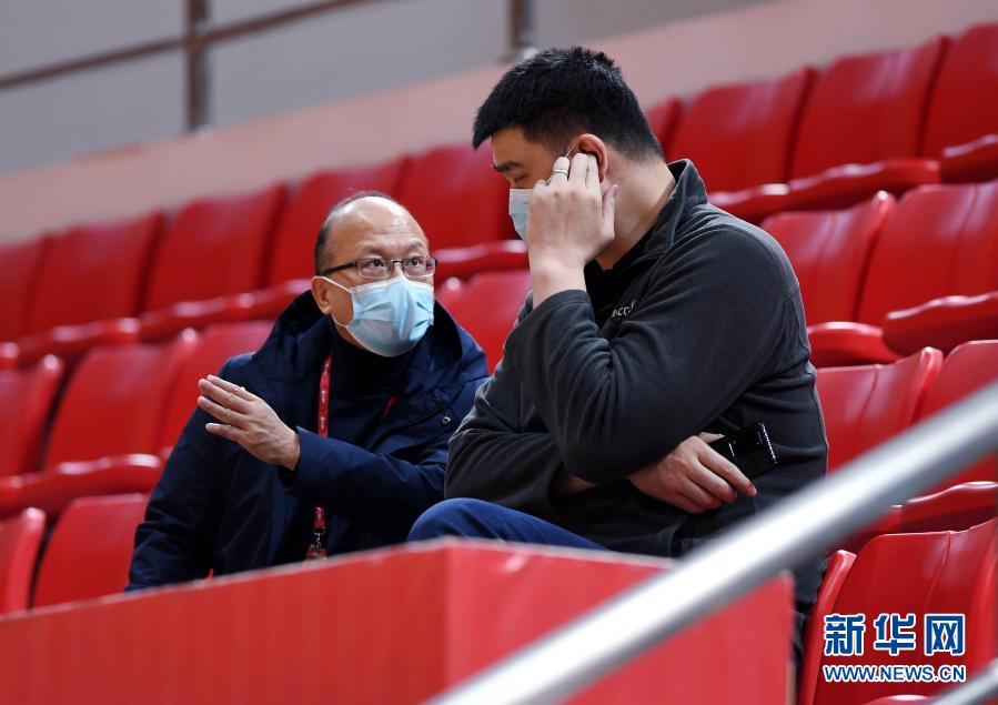 当日,中国篮球协会主席姚明来到现场观看在浙江诸暨举行的2020-2021赛季中国男子篮球职业联赛(CBA)第二阶段第32轮浙江稠州金租队对阵时代中国广州队的比赛。