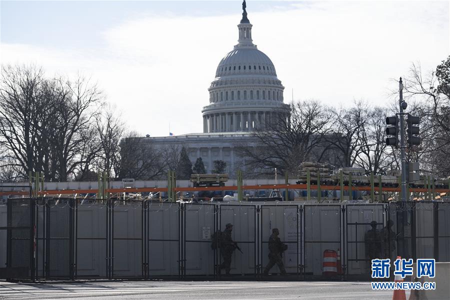这是1月18日在美国首都华盛顿拍摄的国会大厦和隔离围栏。 新华社记者 刘杰 摄