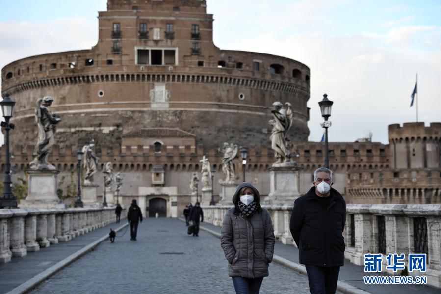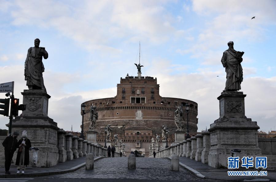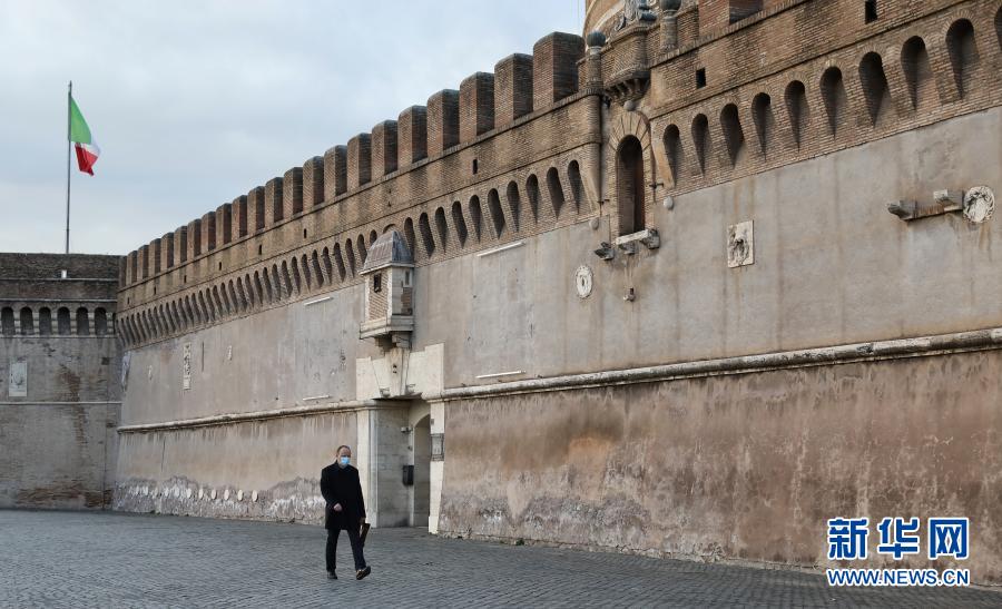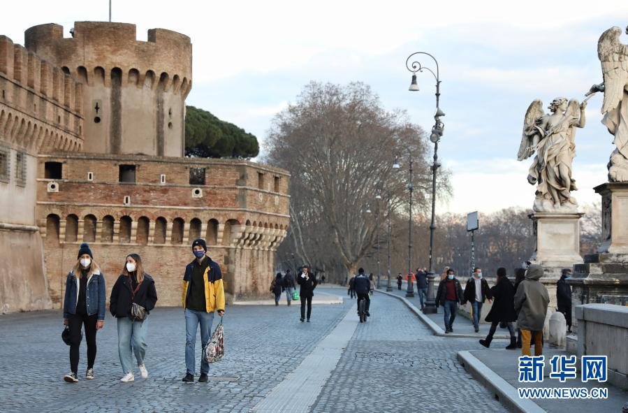 1月19日,在意大利首都罗马,人们戴着口罩走过关闭的圣天使堡。 根据意大利卫生部19日公布的新冠疫情数据,该国累计新冠确诊病例2400598例。 新华社记者程婷婷摄
