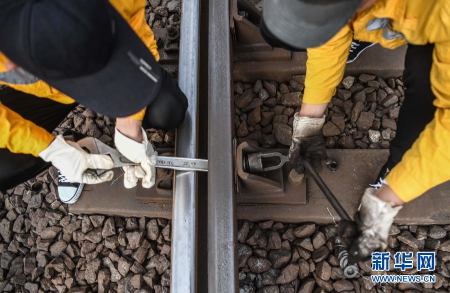 1月20日,钦州工务段防城港线路工区铁路工人在加固钢轨松动的螺丝。 连日来,中国铁路南宁局集团有限公司钦州工务段的铁路工人们全力备战春运,白天集中力量全面“体检”线路,确保“带病设备”及时下道;夜晚加紧驳接道岔,推进防城港第三进港线建设,为2021年春运保驾护航。 新华社记者 张爱林 摄