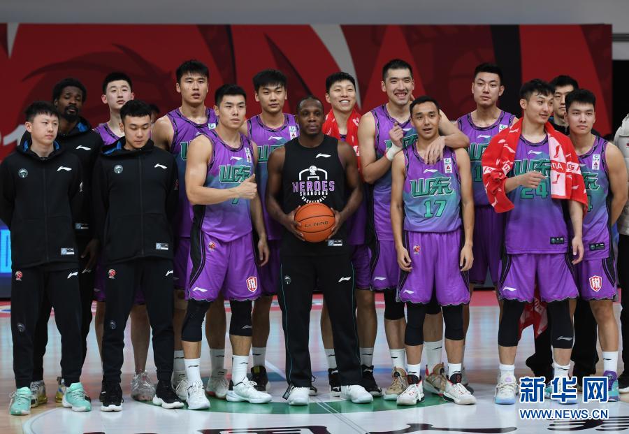 1月20日,山东西王队球员哈德森(中)赛后与队友合影。 当日,在浙江诸暨进行的2020-2021赛季中国男子篮球职业联赛(CBA)第二阶段第32轮山东西王队对阵苏州肯帝亚的比赛中,山东西王队球员哈德森拿下24分,从而以11842分的CBA总得分超过易建联,加冕CBA历史得分王。 新华社记者 李紫恒 摄