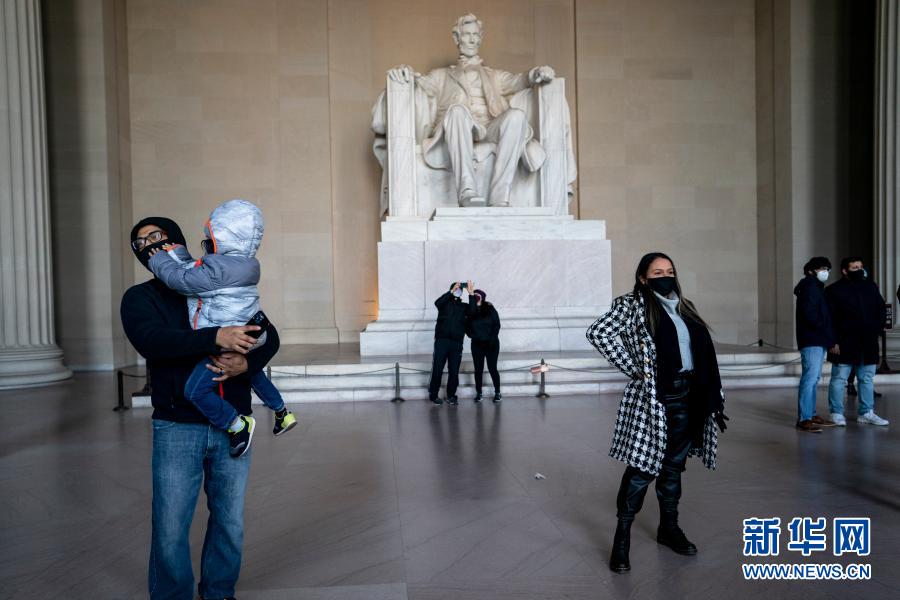 1月23日,佩戴口罩的游客在美国华盛顿林肯纪念堂游览。