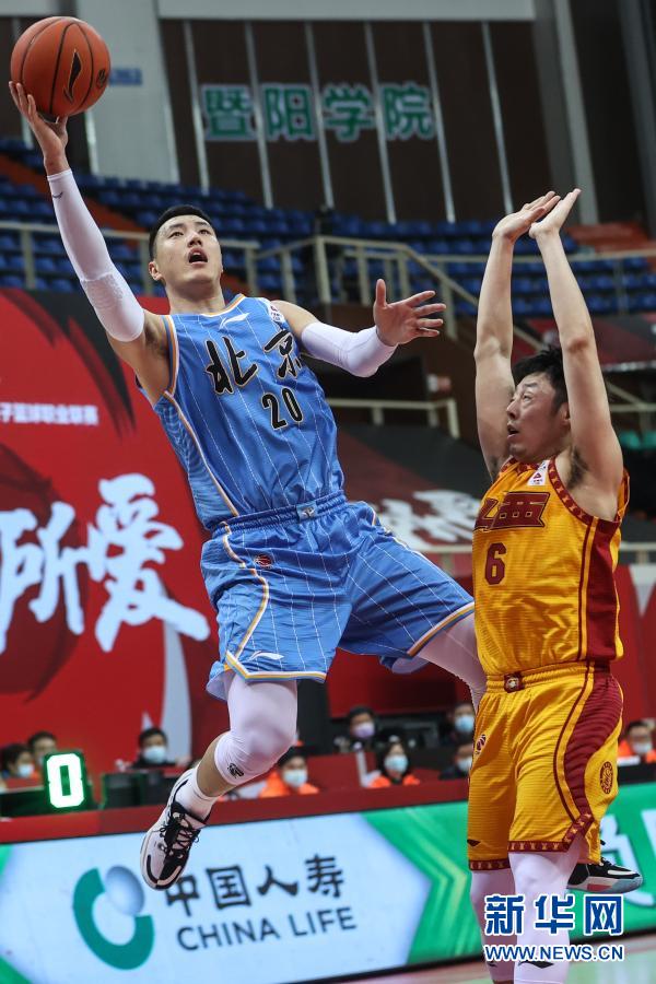 1月25日,北京首钢队球员翟晓川(左)上篮。 当日,在浙江诸暨进行的2020-2021赛季中国男子篮球职业联赛(CBA)第二阶段第34轮比赛中,北京首钢队以125比114战胜山西汾酒股份队。 新华社记者 潘昱龙 摄