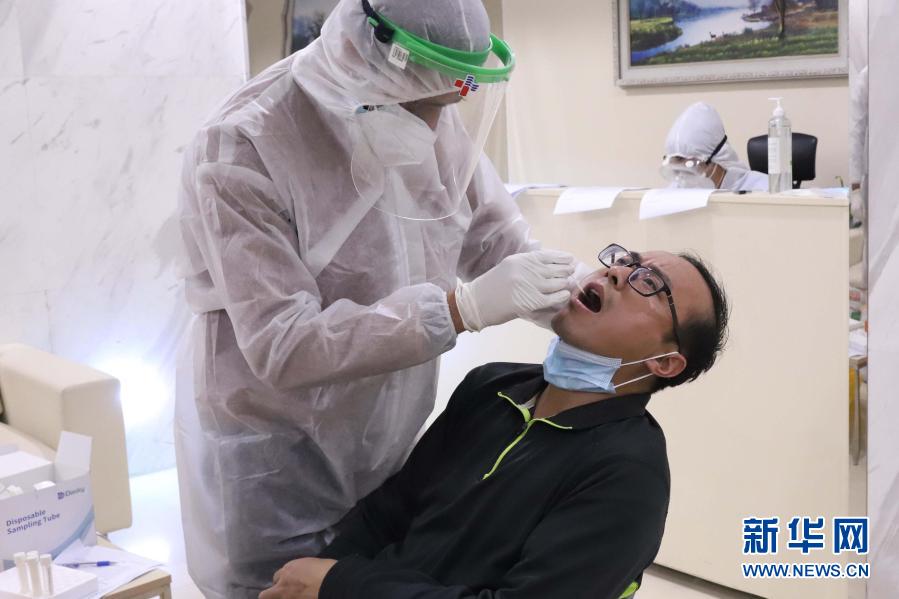 1月23日,在巴基斯坦萨希瓦尔燃煤电站,医务人员为入场人员进行新冠病毒检测取样。 萨希瓦尔燃煤电站是中巴经济走廊优先实施项目,2017年全面建成投产。近期,为防控新冠疫情,萨希瓦尔燃煤电站对入场人员采取病毒检测、隔离等严格的管控措施。 新华社记者 李浩 摄