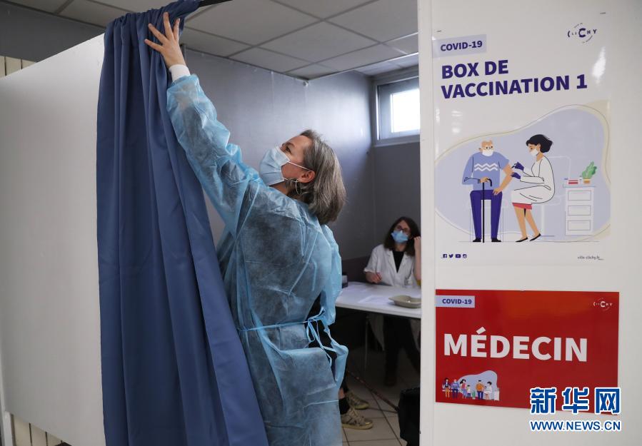 1月18日,在法国巴黎附近的克里希市,医护人员在临时设立的新冠疫苗接种中心做准备。 为加快新冠疫苗接种工作,法国全国超过700个新冠疫苗接种中心自18日起正式开放。75岁及以上的老年人、新冠高危人群即日起可预约接种疫苗。 新华社记者 高静 摄