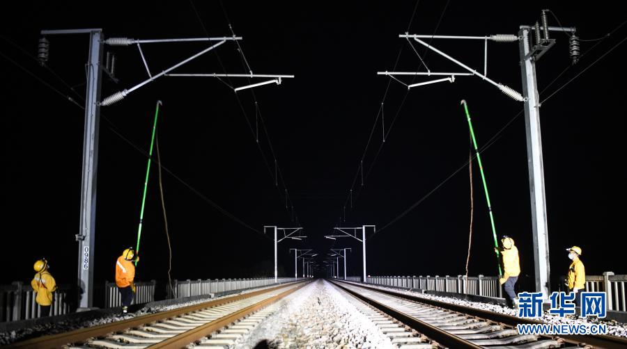 连日来,中国铁路南宁局集团有限公司南宁供电段的工人们利用子夜“天窗”时间,全面检修南广高铁、普铁接触网部件,排除各种隐患,为2021年的春运保驾护航。