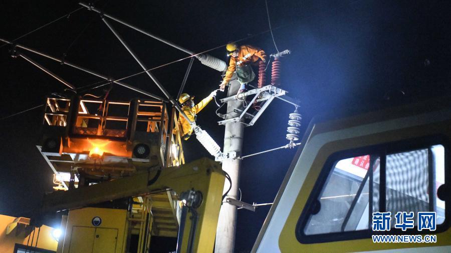 连日来,中国铁路南宁局集团有限公司南宁供电段的工人们利用子夜“天窗”时间,全面检修南广高铁、普铁接触网部件,排除各种隐患,为2021年的春运保驾护航。