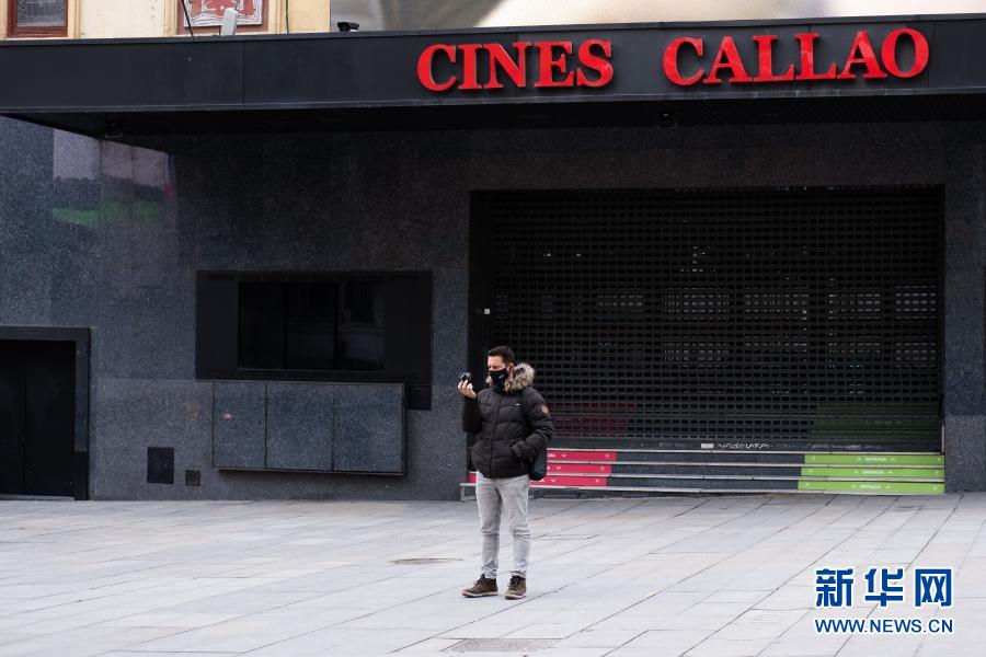 1月26日,一名戴口罩的男子在西班牙马德里卡亚利奥广场拍照。 西班牙卫生部26日发布的统计数据显示,该国25日14时至26日14时新增新冠确诊病例36435例,累计新冠确诊病例超过260万例,达2629817例。 新华社记者 孟鼎博 摄