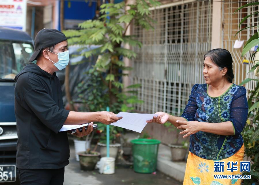 1月24日,缅甸仰光的一名社区管理办公室工作人员向居民发放新冠疫苗接种登记表。新华社记者 张东强 摄
