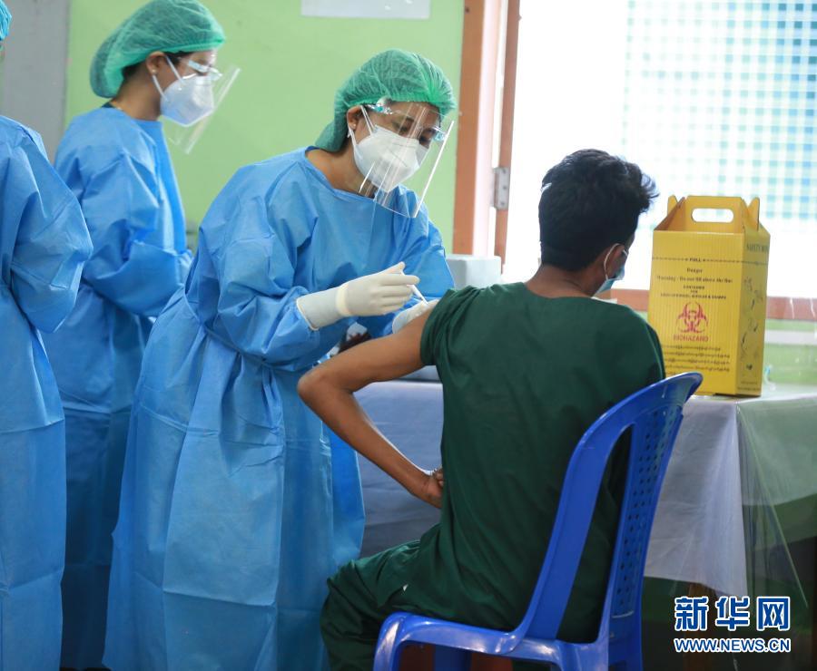 1月27日,一名医务人员在缅甸仰光综合医院接种新冠疫苗。新华社记者 张东强 摄