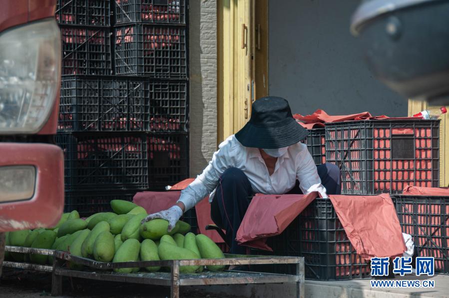 1月21日,在三亚市海棠区南田农场的一户果农家,工人在挑选芒果,按不同品质装好箱后,将被运往全国各地。新华社记者 张鑫超 摄