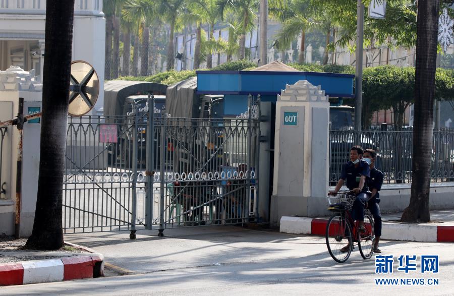 这是2月1日拍摄的被封闭的缅甸仰光市政大楼,院内停着数辆军车。 缅甸总统温敏、国务资政昂山素季及一些民盟高级官员1日凌晨被军方扣押。缅甸军方随后宣布,开始实施为期一年的紧急状态,国家权力被移交给国防军总司令。 新华社记者 张东强 摄 |