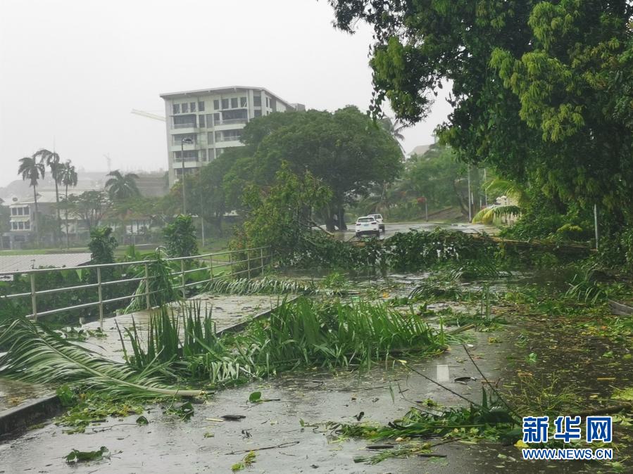 这是1月31日在斐济苏瓦街头拍摄的被吹倒的树枝。 2021年第一股热带气旋"安娜"连日来肆虐南太平洋岛国斐济,目前已经造成5人失踪,许多地区发生洪涝灾害,河水暴涨,村庄被淹,交通及水电供应中断,数千人被迫疏散。斐济国家气象局说,靠近热带气旋中心附近的风速高达每小时100公里,最高时可达每小时140公里。 新华社记者 张永兴 摄