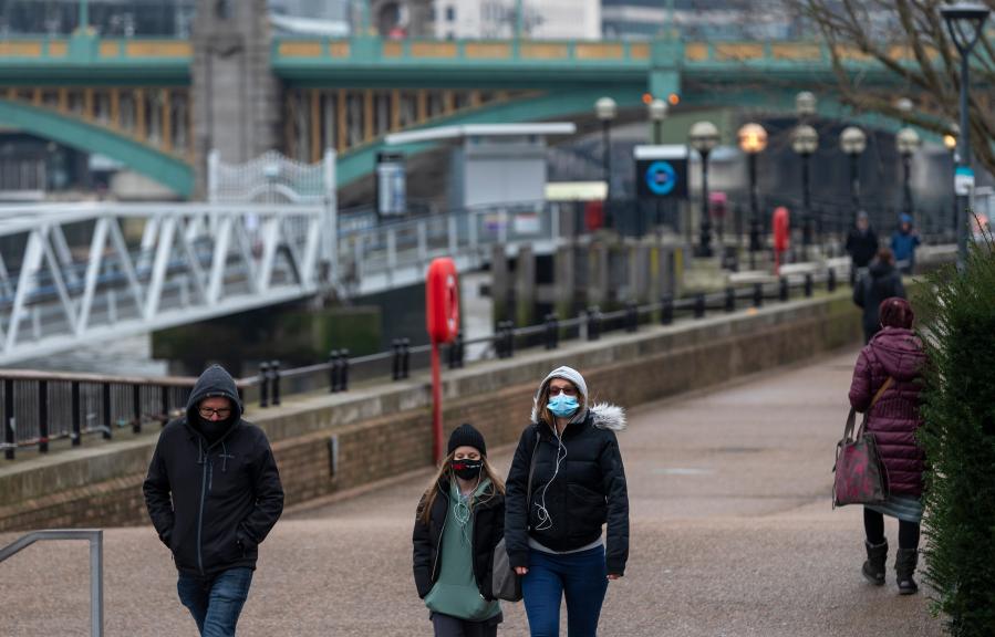 2月1日,人们戴着口罩走在英国伦敦泰晤士河畔。