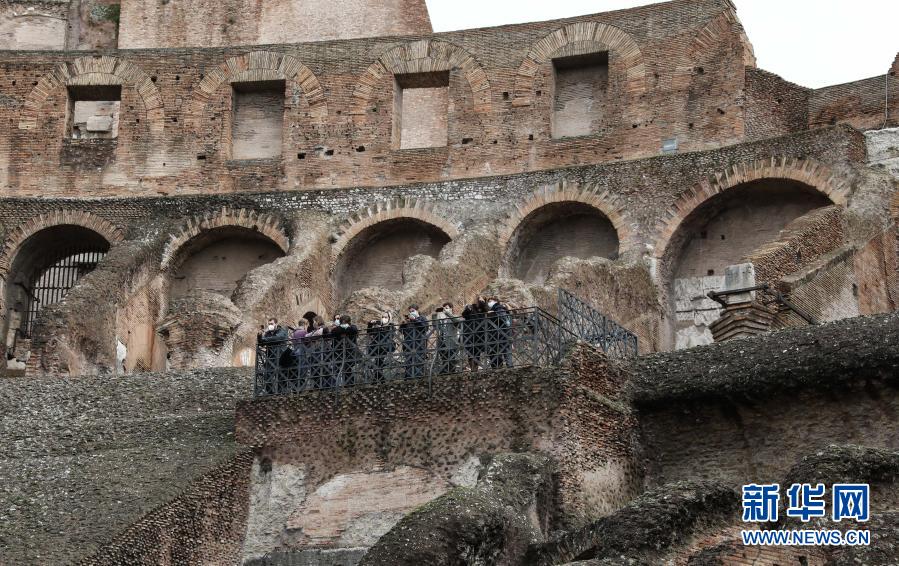 2月1日,在意大利首都罗马,人们在重新开放的斗兽场内观看表演。 意大利大部分地区从2月1日开始降入最低风险级别的“黄区”,放松疫情管控措施。 新华社记者 程婷婷 摄