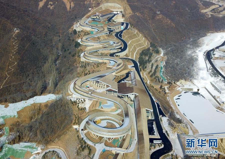这是2020年12月21日拍摄的国家跳台滑雪中心(无人机照片)。新华社记者 杨世尧 摄 延庆赛区小海陀山仍戴雪冠。国家高山滑雪中心赛道从山端直泻而下,11条缆车索道将场馆区域串联,山脚下的国家雪车雪橇中心宛若巨龙盘卧,冬奥村和山地新闻中心掩映于山林之间。 张家口赛区,一柄中国传统饰物“如意”嵌于林海雪原,古老东方文明的馨香从我国首座符合国际标准的跳台滑雪场里悠然沁出;国家越野滑雪中心、国家冬季两项中心、云顶滑雪公园四散分布,漫步廊道缀珠成串俨然“冰玉环”。 “跳台滑雪赛道本身就是一个很光滑、很流畅的S形曲线,你可以说它是一个飘带,更形象的表达就是我们中国文化元素中的‘如意’。”张家口赛区总设计师、清华大学建筑学院院长张利这样介绍“雪如意”的设计初衷。