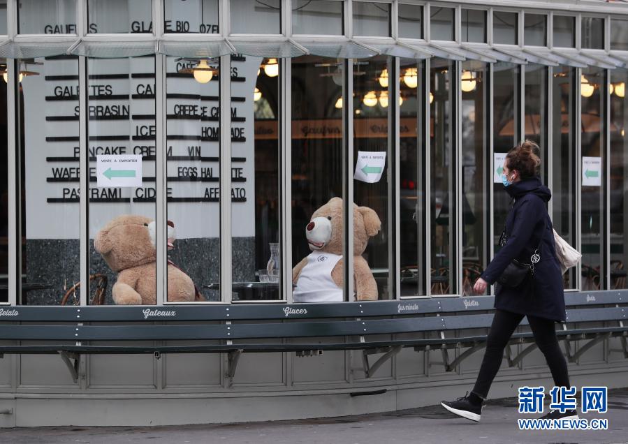 2月3日,一名女子走过法国巴黎街头一家关门的餐馆。新华社记者 高静 摄