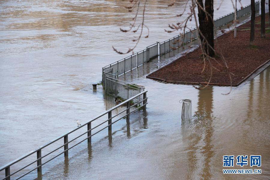 这是2月3日在法国巴黎塞纳河畔拍摄的被水淹没的地区。 近日,由于连日降雨,法国巴黎塞纳河水位持续上涨。 新华社记者 高静 摄